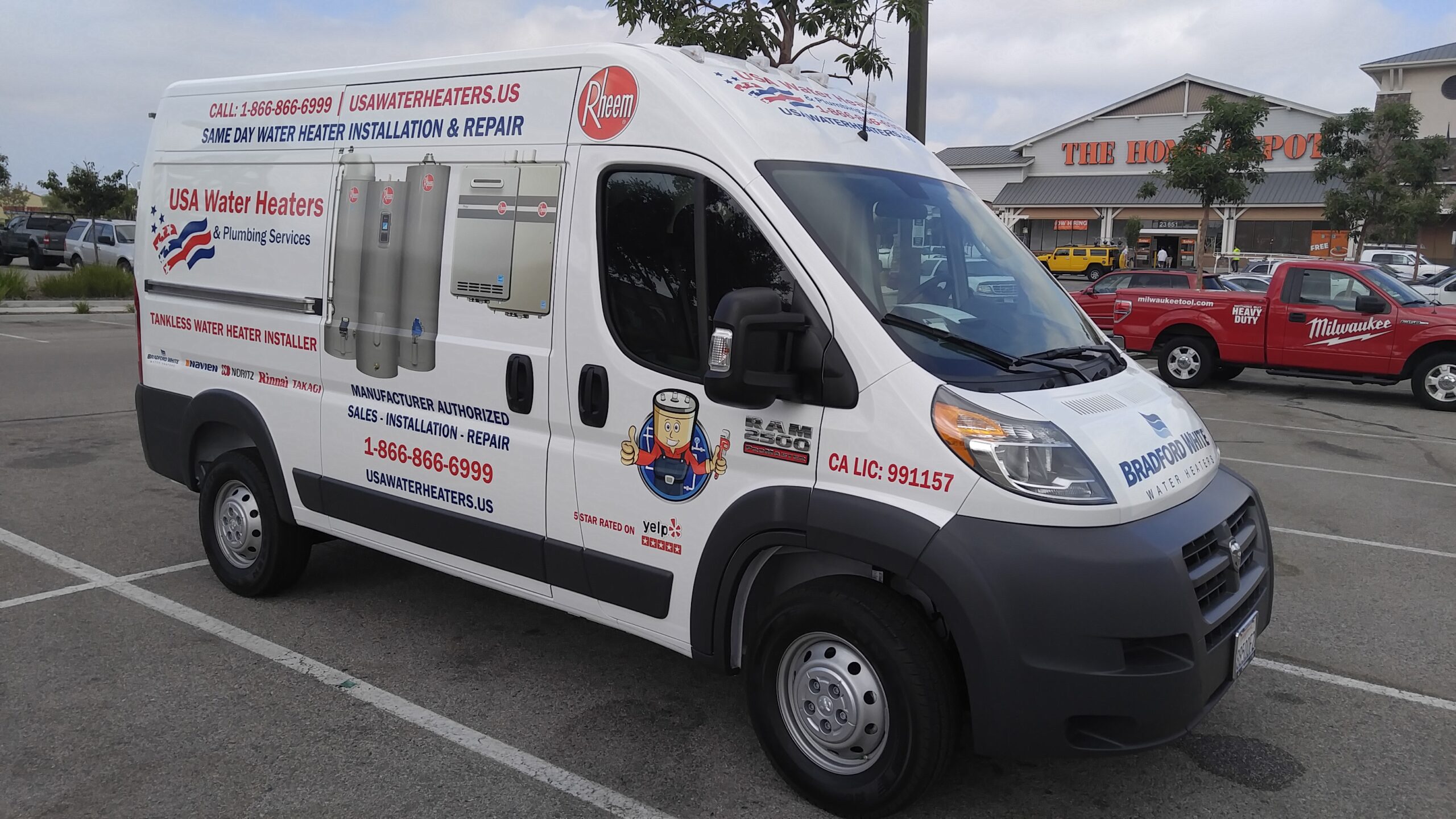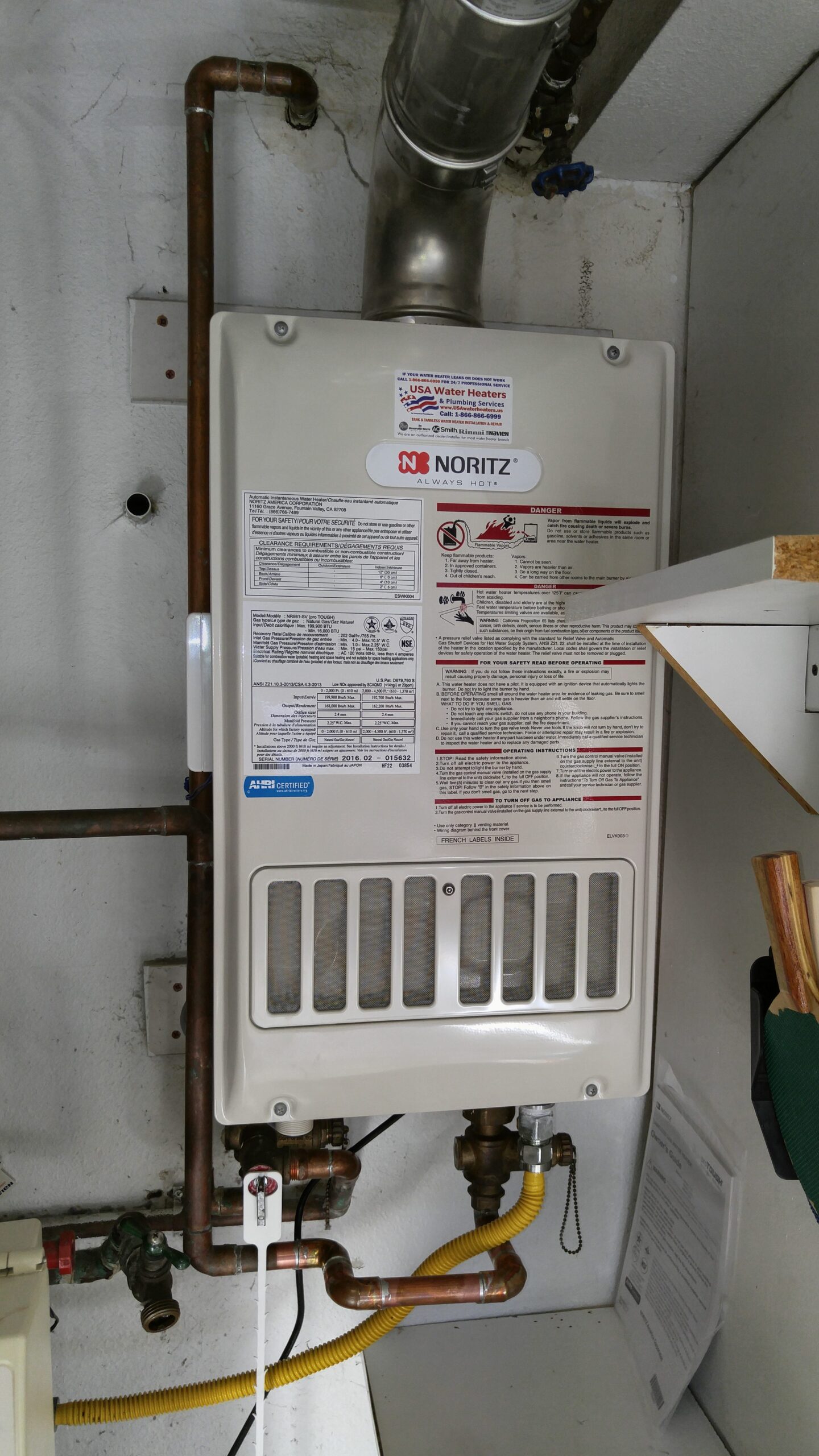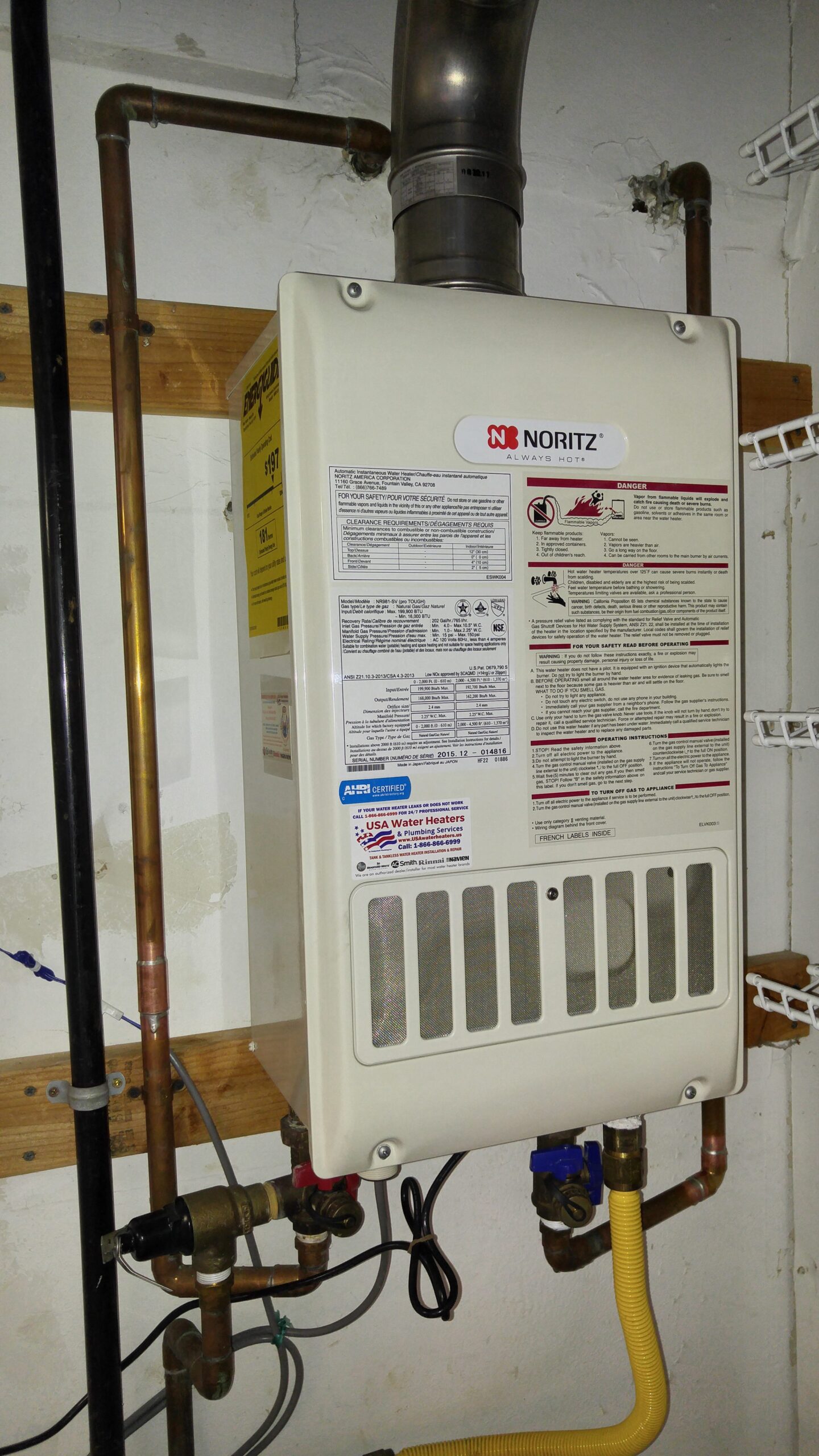 We at USA Water Heaters are an Authorized Dealer and Installer for all major water heater brands such as; Rheem, Bradford White, Rinnai, Navien, Noritz, and Takagi. We sell and install all residential gas tankless water heaters as well as 30, 40, 50, 75 and 100 gal gas and electric tank water heaters. With some exclusions, we also repair most gas tank water heaters such as; Rheem, Bradford White, GE(General Electric), Whirlpool, Kenmore and State. We offer the complete service; The Sale, Delivery, and Installation of your new water heater, as well as haul away of the old unit.
